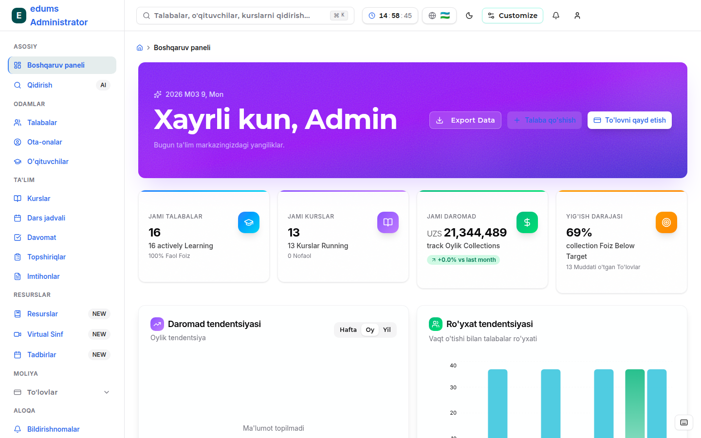 “EDUMS transformed how we run our center. We went from spreadsheets to a fully automated system in one week. Payment tracking alone saves us 10 hours a month.”
